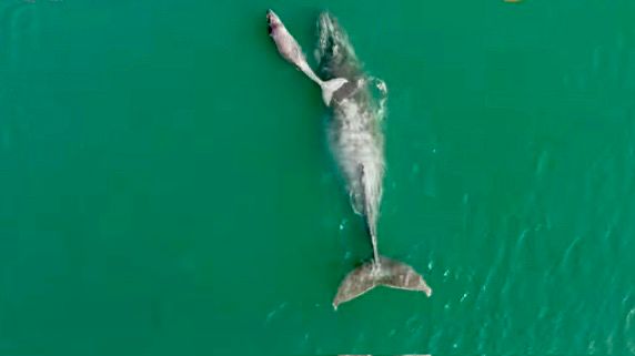 Acapulco; Gro.- La mañana de este pasado 6 de enero, se pudo observar a una ballena jorobada junto a su ballenato en la zona de playa del puerto de Acapulco.