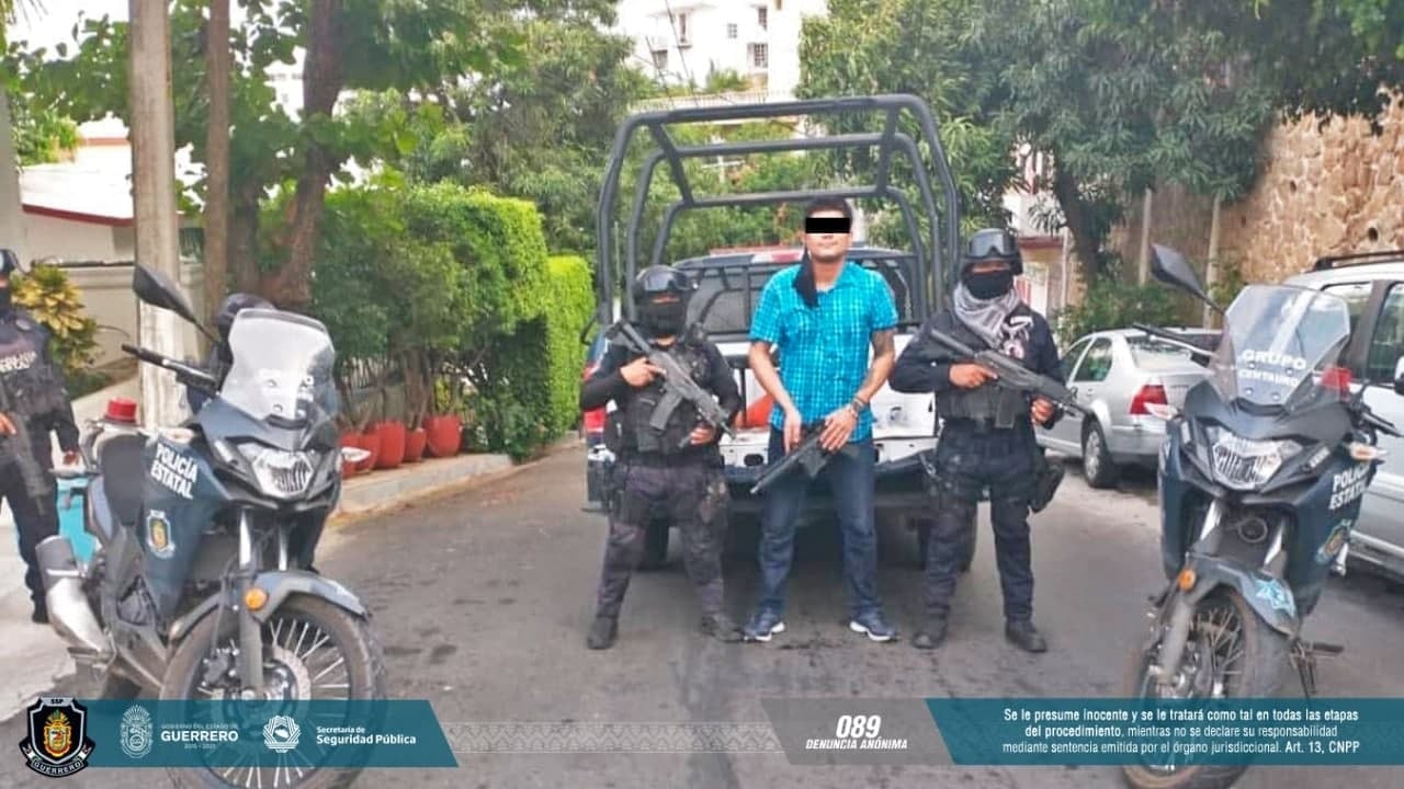 Chilpancingo., Guerrero, a 14 de junio de 2021.- Elementos del Grupo Táctico de Reacción Inmediata “Centauro” de la Policía Estatal detuvieron a un hombre en poder de un arma larga de fuego en el municipio de Acapulco.