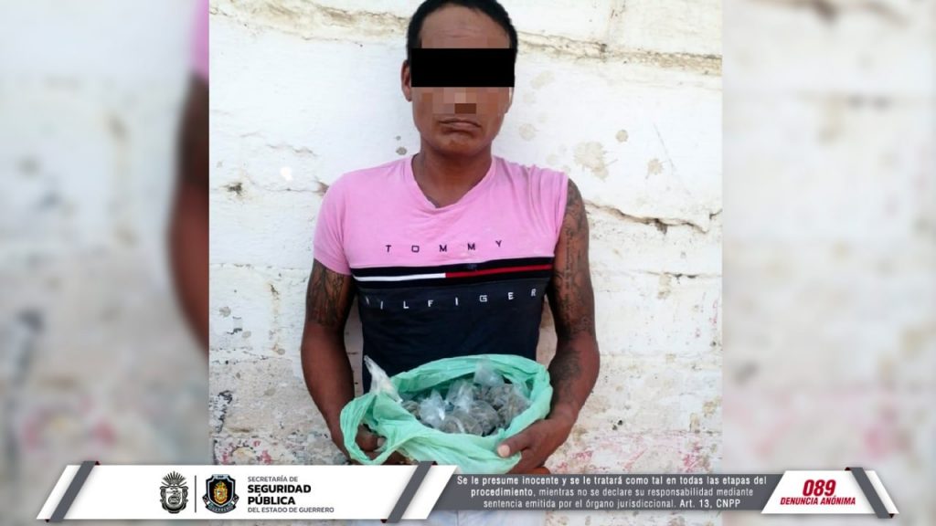 El hombre fue identificado como Juan Carlos “N”, y tras una inspección se le aseguraron 19 bolsitas de plástico con hierba verde, similar a la marihuana y siete dosis de una sustancia sólida, características de la droga conocida como “cristal”.