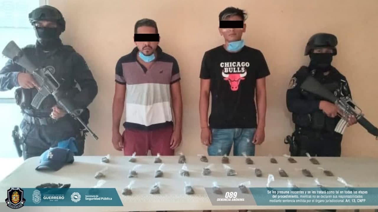 Chilpancingo, Guerrero, 12 de mayo de 2021.- Como resultados de los operativos de seguridad, elementos de la Policía Estatal detuvieron a dos hombres en posesión de presunta droga en el municipio de Acapulco.