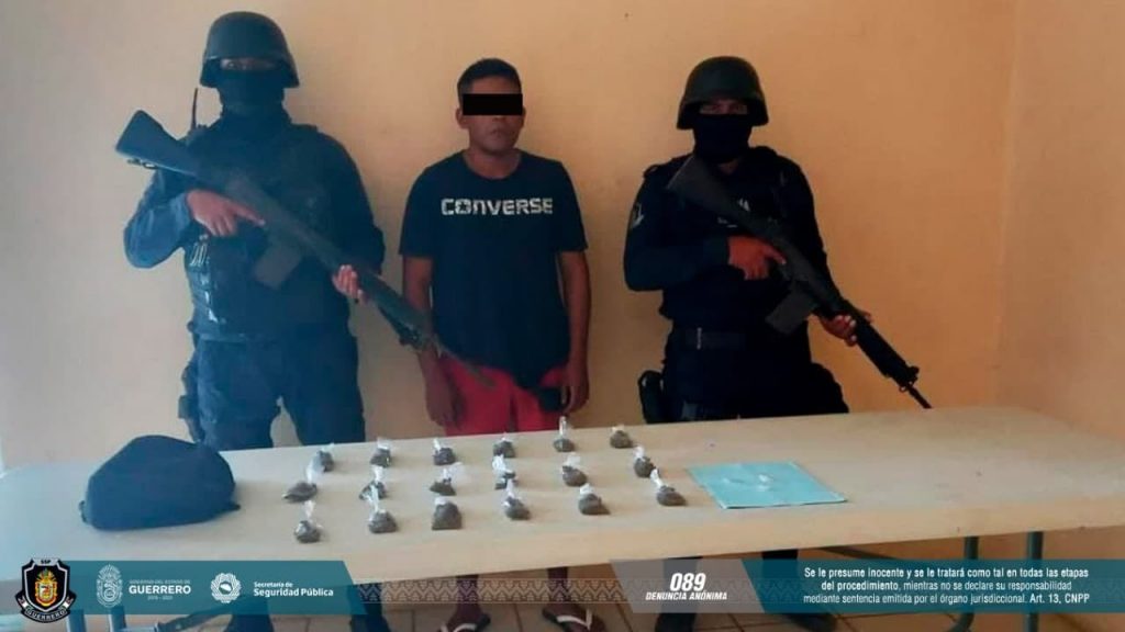 Chilpancingo, Guerrero, 05 de mayo de 2021.- En dos hechos distintos, elementos de la Policía Estatal, quienes realizaban acciones de seguridad por colonias del municipio de Acapulco, detuvieron a dos hombres con presunta droga.