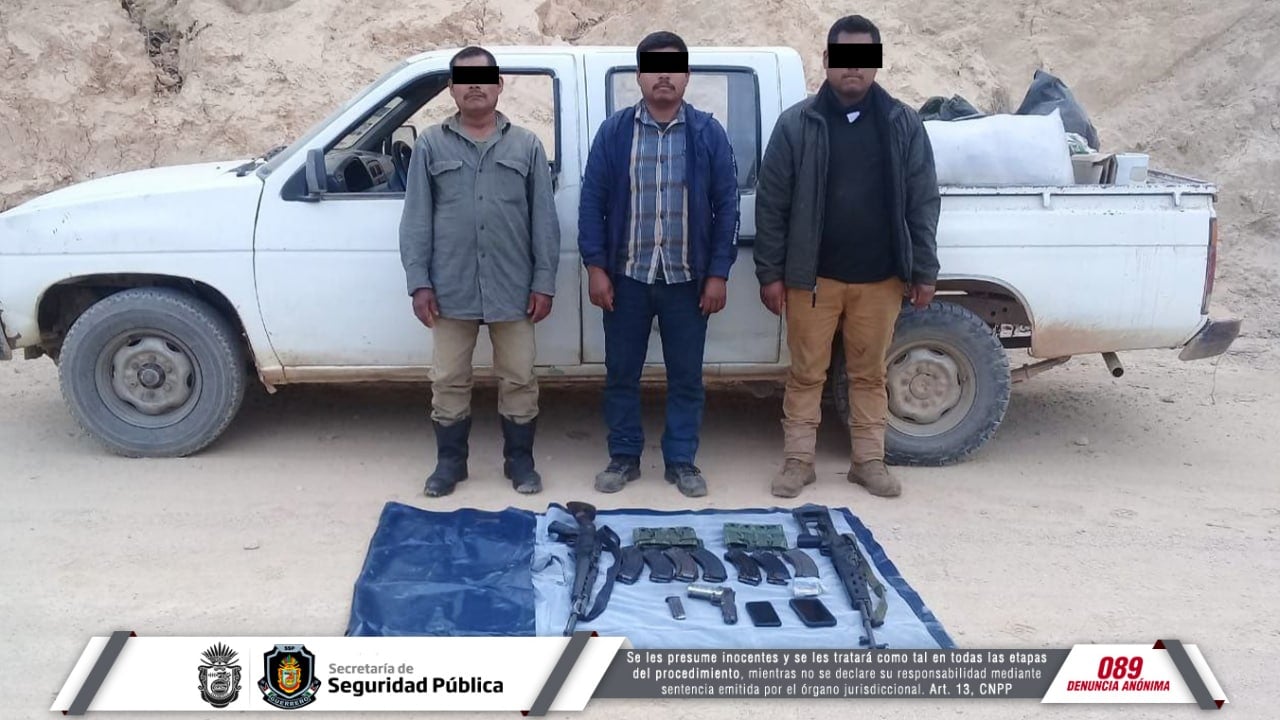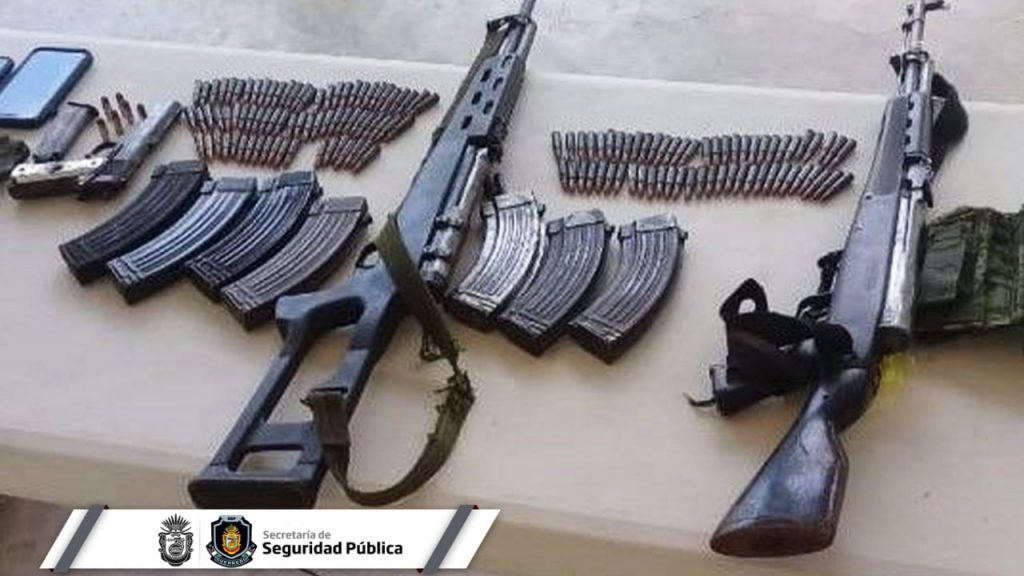 Tras una revisión, se les localizó en posesión de un arma de fuego corta, dos armas largas AK-47, ocho cargadores y 141 cartuchos de distintos calibres.