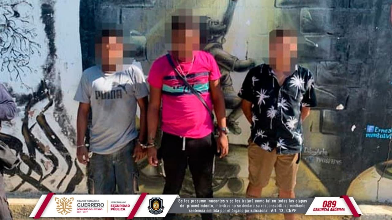 Chilpancingo, Guerrero, 07 de diciembre de 2021.- Personal de la Policía Estatal detuvieron a tres personas en posesión de presunta droga en el municipio de Acapulco.
