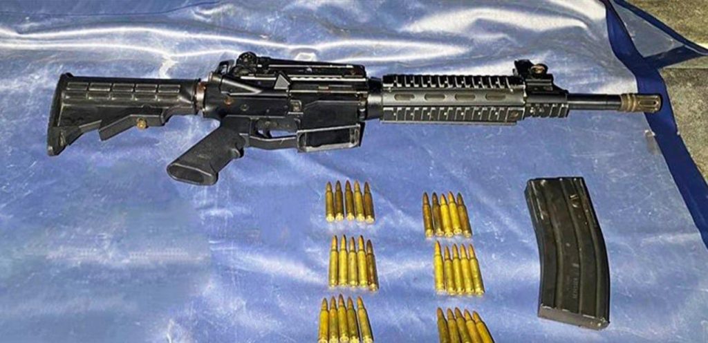 Tras una inspección se le localizó un arma de fuego larga; un cargador metálico y 30 cartuchos útiles calibre .223 mm.