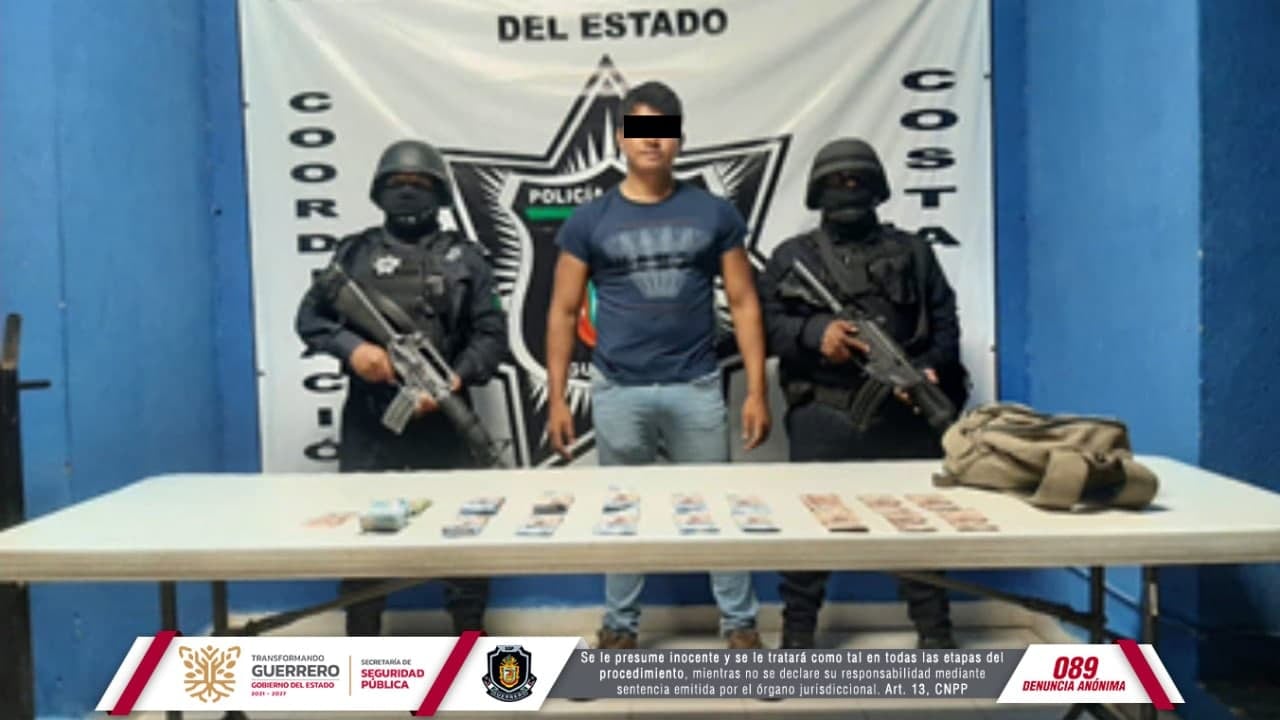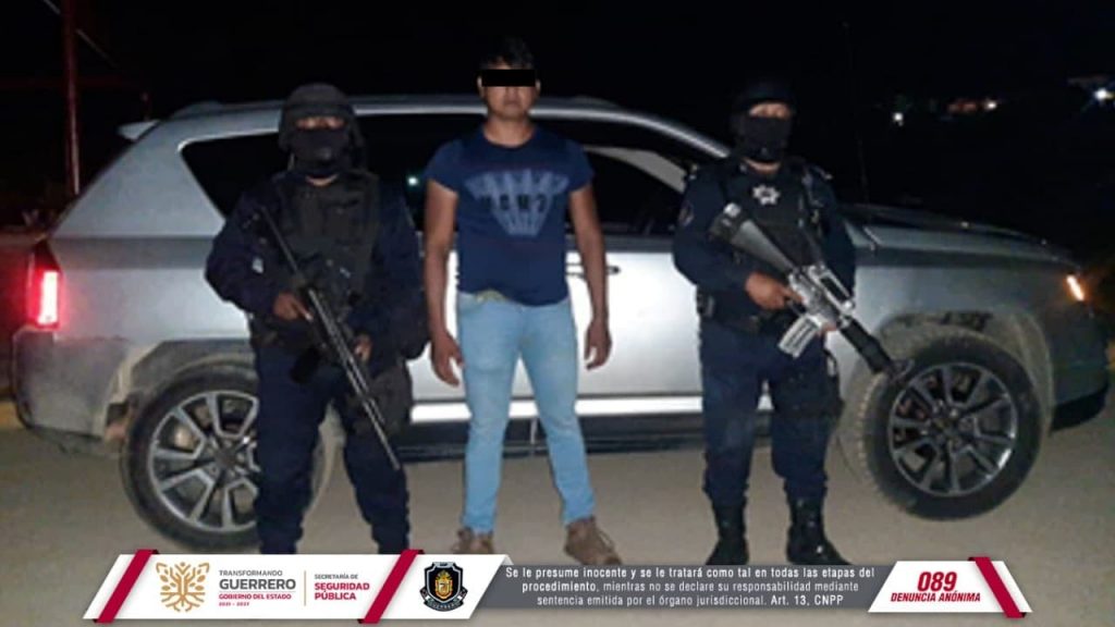 Chilpancingo, Guerrero, 17 de noviembre de 2021.- Elementos de la Policía Estatal, quienes realizaban acciones de seguridad y recorridos de prevención del delito, detuvieron a una persona en el municipio de Ometepec, en la región de la Costa Chica.