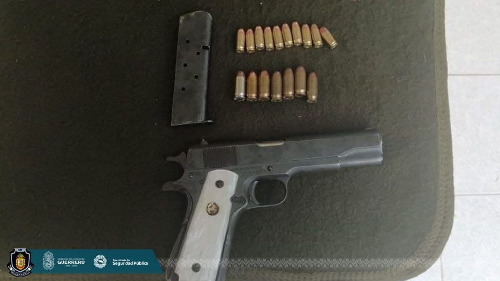 El individuo fue identificado como Samuel “N”, y tras una revisión se le localizó un arma de fuego calibre 45 mm.