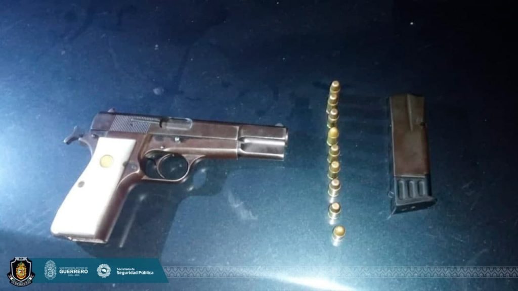 Chilpancingo, Guerrero, 24 de mayo de 2021.- En acciones coordinadas, elementos de la Policía Estatal, del Grupo de Operaciones Especiales “Jaguar” y de la Guardia Nacional detuvieron a un hombre en posesión de un arma de fuego, un cargador y cartuchos en el municipio de Tecpan de Galeana, en la región de la Costa Grande.