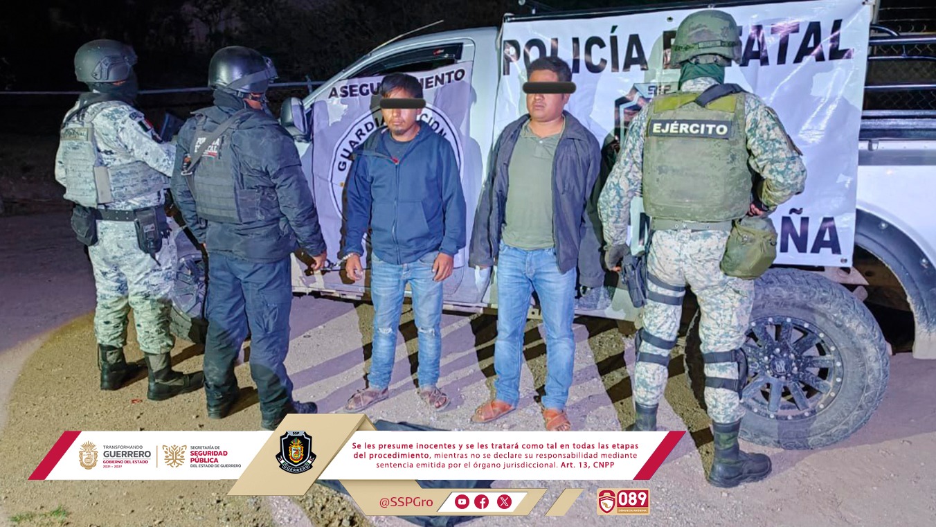 Chilpancingo, Guerrero, 18 de junio de 2024.- Como resultado de acciones conjuntas, personal de la Policía Estatal en coordinación con la Secretaría de la Defensa Nacional y Guardia Nacional detuvieron a dos individuos en posesión de un arma de fuego y un vehículo en el municipio de Cochoapa el Grande.