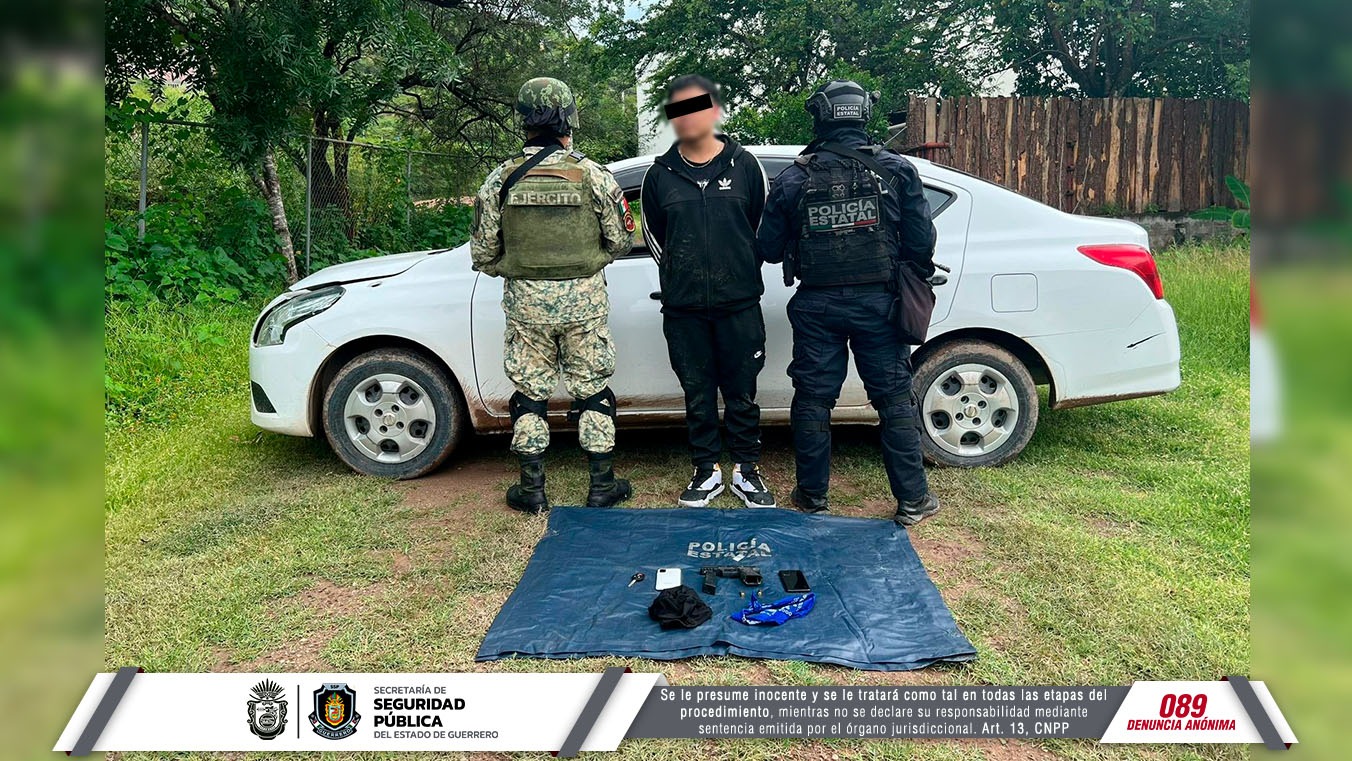 Chilpancingo, Guerrero, 08 de septiembre de 2023.- Como resultado de acciones conjuntas, personal de la Policía Estatal y de la Secretaría de la Defensa Nacional detuvieron a un individuo en posesión de un arma de fuego en el municipio de Tlapa.