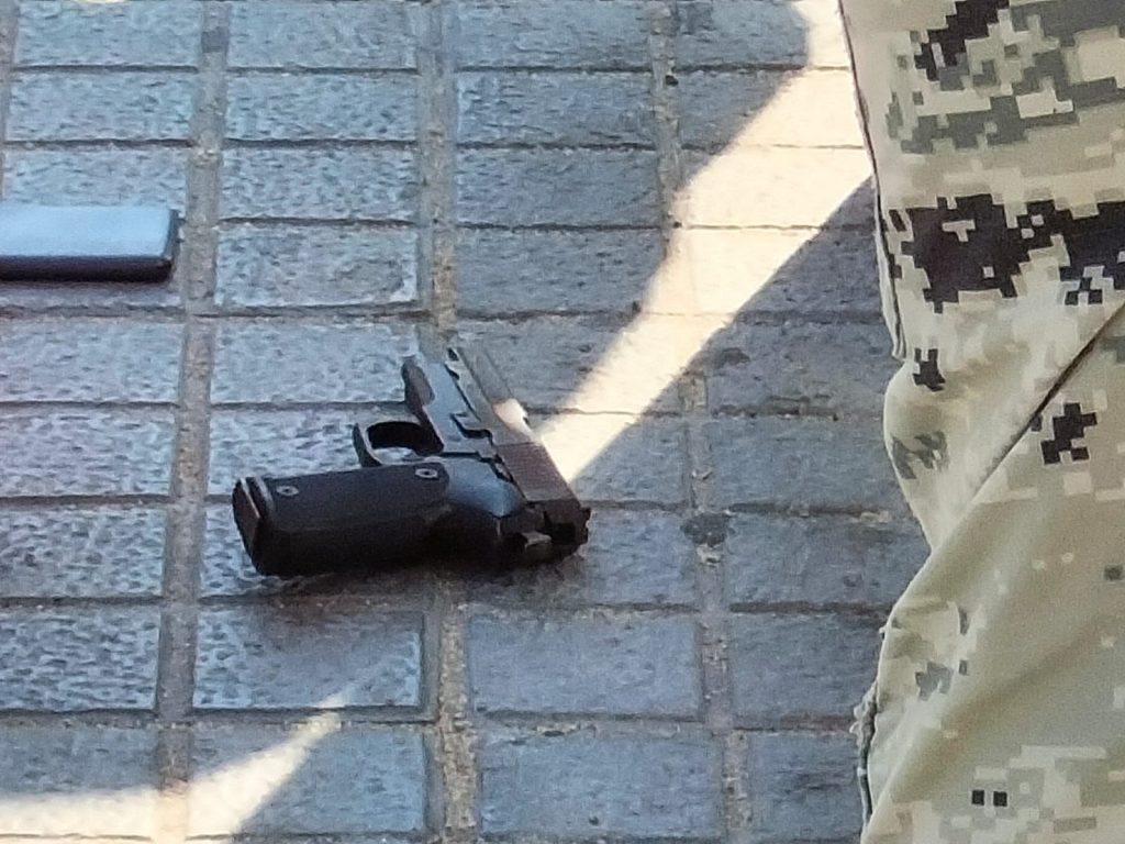 Al lugar arribaron elementos de la Guardia Nacional quienes detuvieron a los dos hombres y les aseguraron un arma. Al parecer los detenidos protagonizaron una balacera en ese lugar.
