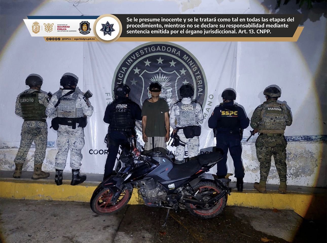 Acapulco, Gro., 5 de febrero de 2026. Como resultado de acciones operativas interinstitucionales, elementos de la Policía Estatal, en coordinación con la Fiscalía General del Estado, Ejército Mexicano y Guardia Nacional, lograron la detención de un masculino en la colonia Hogar Moderno, municipio de Acapulco.