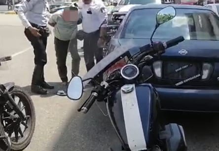Al llegar a la calle Andrés de Urdaneta, el conductor detuvo la marcha del vehículo Nissan tipo Sentra y descendió una joven, posteriormente, el infractor intentó poner en marcha la unidad, a la vez que amagaba a los oficiales con un machete, lesionando a uno de ellos.