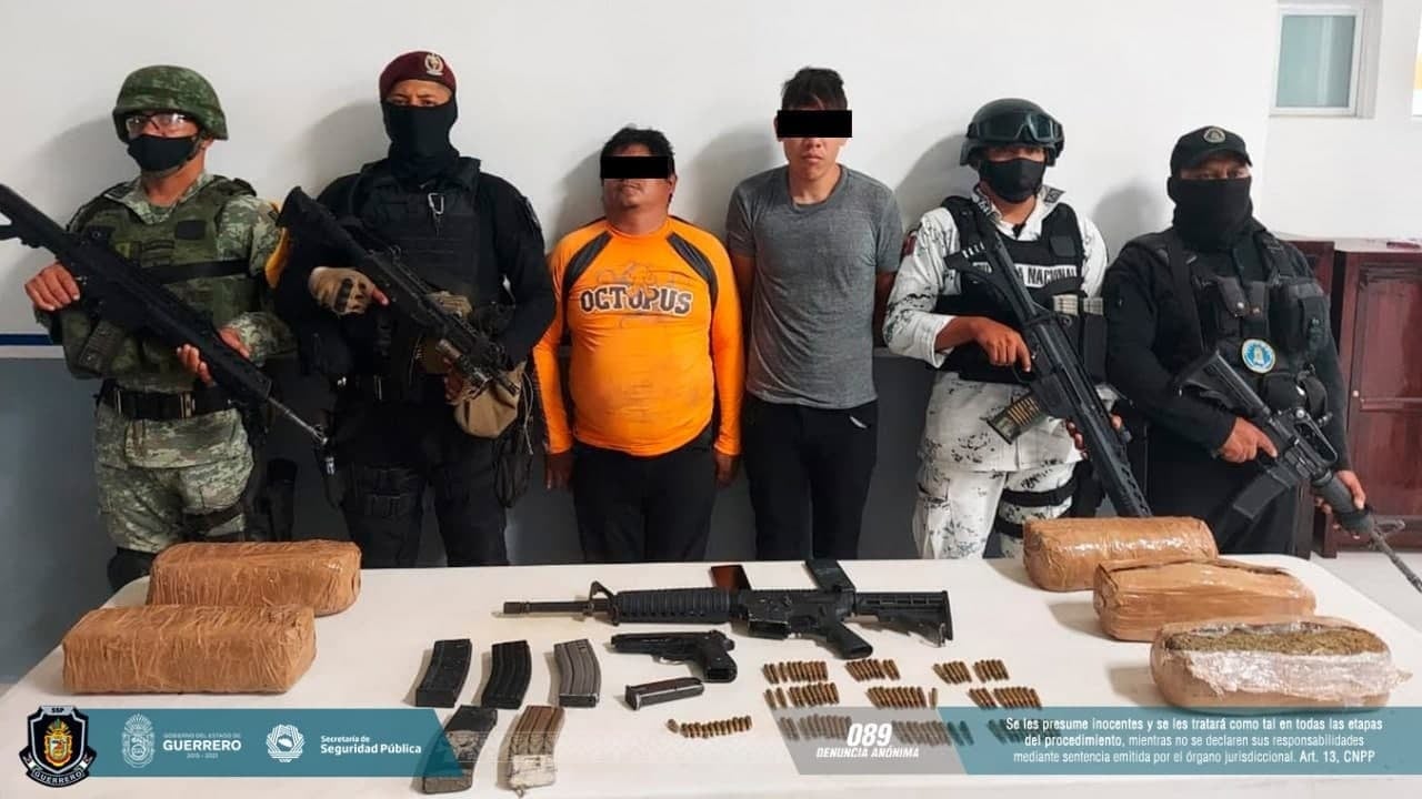 Los dos hombres, junto con la presunta droga, armamento, cartuchos y el vehículo fueron puestos a disposición de las autoridades correspondientes.
