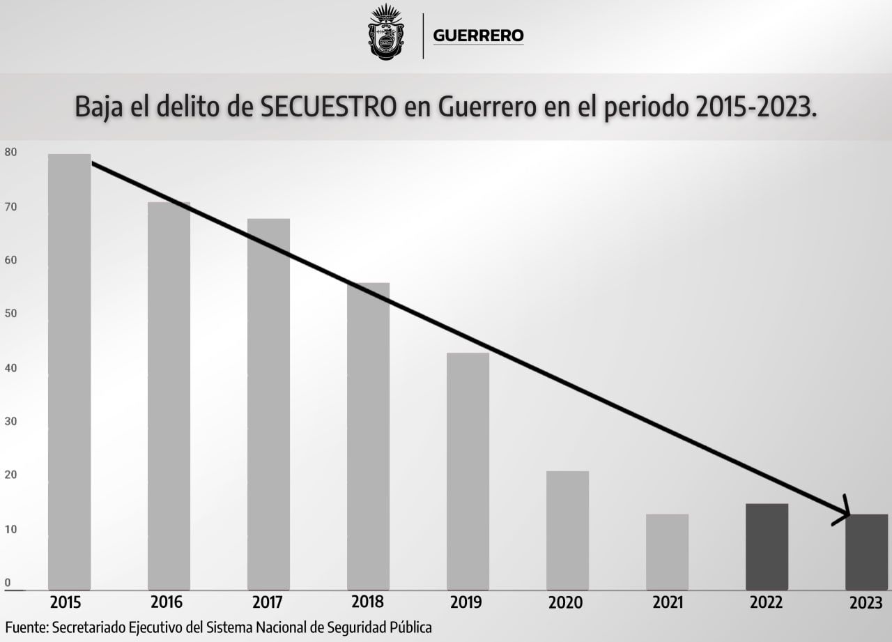 Chilpancingo, Gro., 26 de marzo de 2024.- De acuerdo a datos del Secretariado Ejecutivo del Sistema Nacional de Seguridad Pública, los delitos de secuestro y extorsión registran sus niveles más bajos de los últimos años en Guerrero.