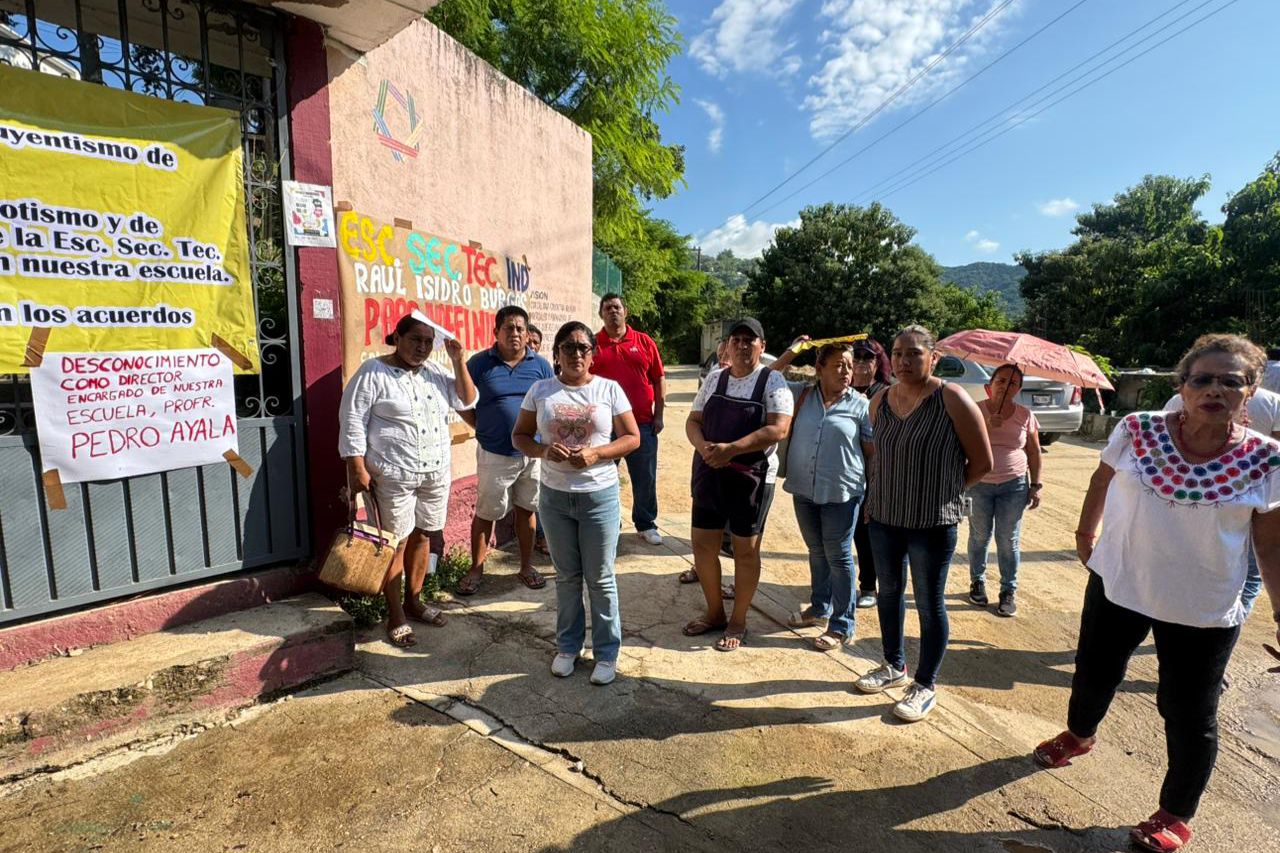 Acapulco; Gro,. A 13 de octubre del 2025.- Maestros de la Secundaria Técnica Industrial “Raúl Isidro Burgos” ubicada en el poblado de Los Órganos se manifestaron para exigir la intervención inmediata de las autoridades estatales ante lo que califican como una grave irregularidad administrativa: el director oficial de la institución, Fernando Silva Sotelo, no se presenta a trabajar desde hace 12 años, pese a seguir cobrando su salario y otros beneficios sindicales.