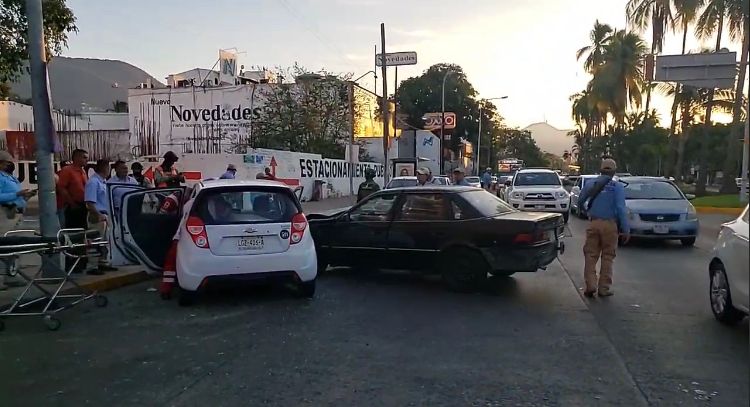 Ambos vehículos quedaron a escasos metros del extinto periódico “Novedades Acapulco”.