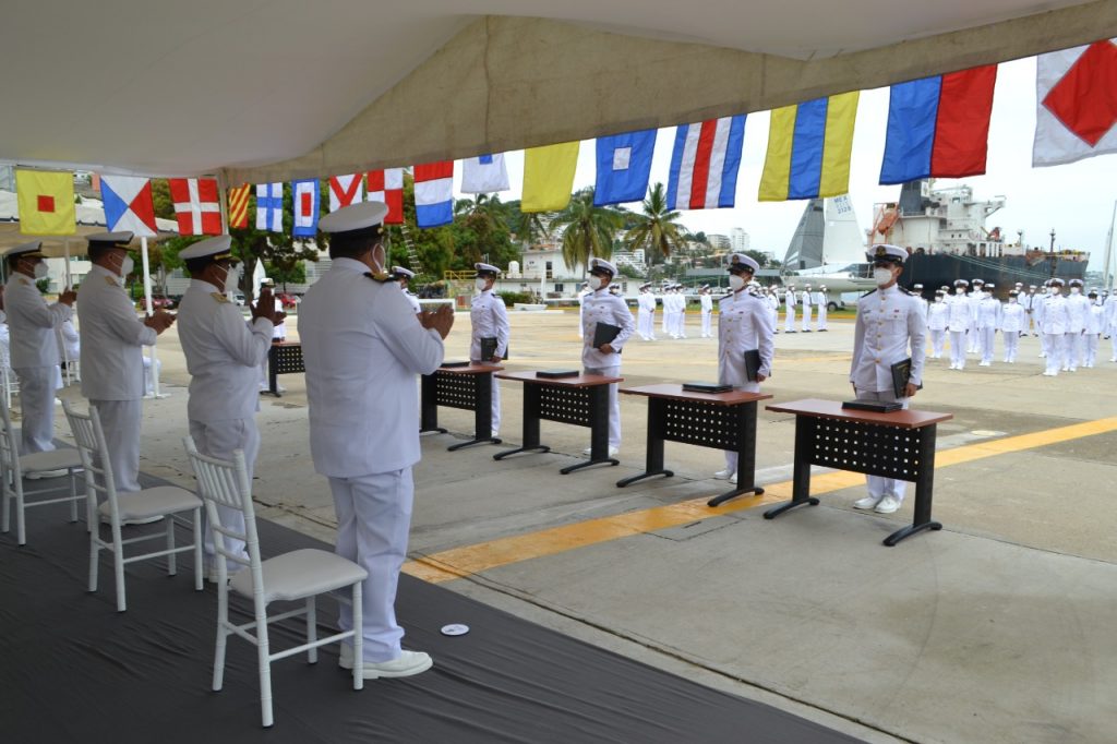 “Zarpamos a este viaje, abrazados de los valores de nuestra Escuela: Disciplina, para cumplir con rectitud y constancia; Valor, para no temer a la adversidad y a lo desconocido; y Eficiencia, en lograr que nuestro trabajo y deber se cumplan con la mayor calidad y compromiso”, puntualizó.