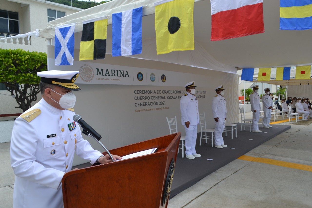 Acapulco, Guerrero.- La Secretaría de Marina-Armada de México a través de la Universidad Naval, informa que esta mañana se llevó a cabo una significativa ceremonia con motivo de la graduación de 12 alumnos de la carrera técnico profesional en Búsqueda y Rescate Marítimo, y 13 de Buceo Naval y Trabajos Submarinos, de la generación 2018-2021 de la Escuela de Búsqueda, Rescate y Buceo de la Armada de México, con sede en Acapulco, Guerrero.