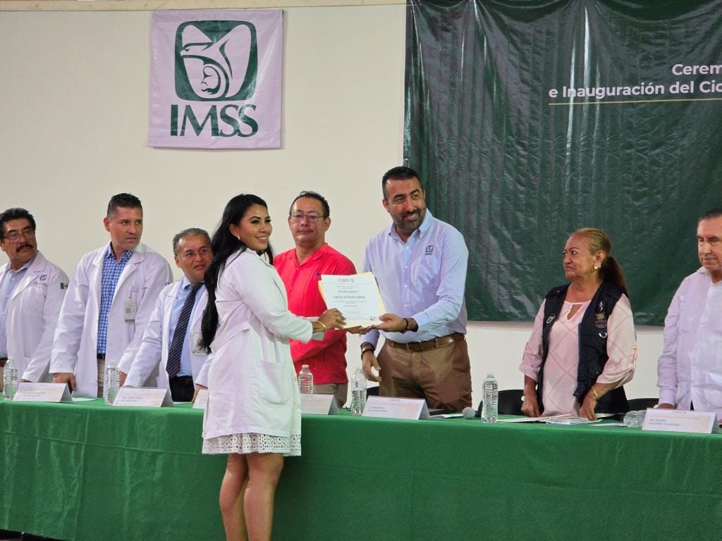 Al encabezar la ceremonia de clausura del ciclo académico 2023-2024 e inauguración del ciclo académico 2024-2025, de los cursos de especialización médica, el encargado de Despacho del Instituto en la entidad, Mauricio Roldán Parra resaltó las acciones que durante este periodo llevaron a cabo las médicas y médicos, para el fortalecimiento de la atención de la población.