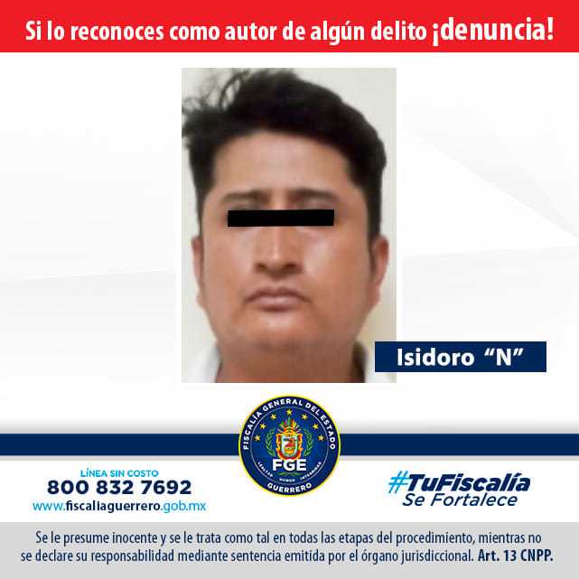 *Fiscalía de Guerrero logra sentencia de 11 años de prisión en contra de Isidoro “N”, como responsable del delito de Extorsión en Chilapa de Álvarez.
