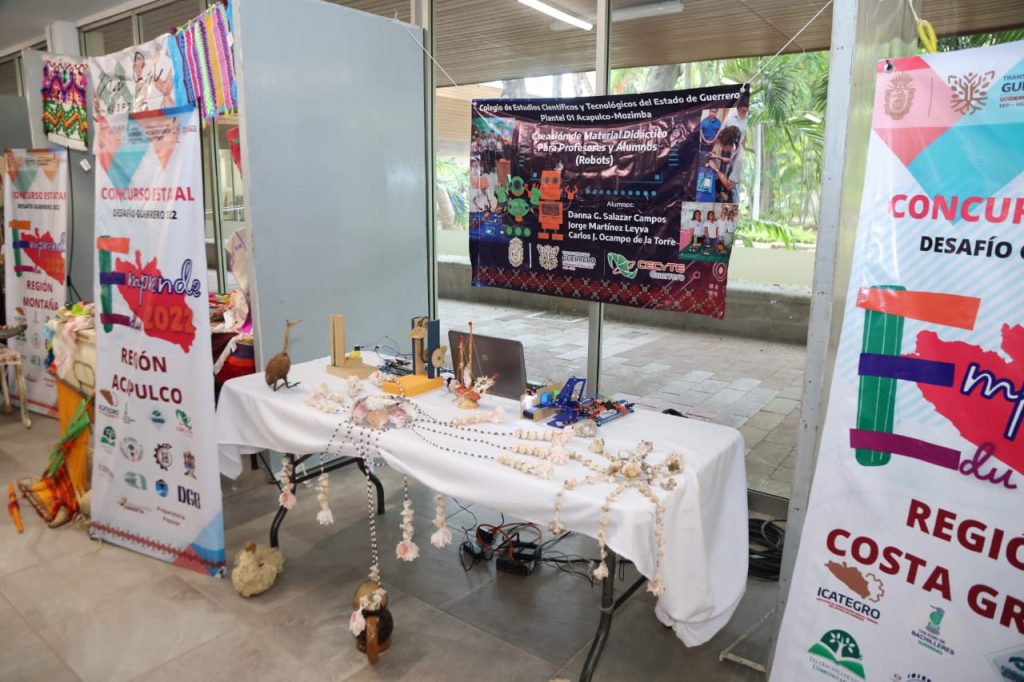 Los proyectos concursantes son Tejido y elaboración de huipiles y servilletas de telar de cintura, del Bachillerato Intercultural Plantel 04, de la Montaña; Elaboración de huipiles, del Bachillerato Intercultural 03, de la Costa Chica; Ángeles platos comestibles, del CBTIS 134, de la región Centro; Producción de alimento comercial para cerdos a base de ensilado biológico de víscera de pescado, del Centro de Bachillerato Tecnológico Agropecuario Número 288 de Tierra Caliente; Safsty Chalecos inteligentes Jacketone, del CBTIS 56, de la región Norte; Rescate de la medicina tradicional de la Anredera Vesicaria, de la Preparatoria 23, de la Costa Grande y, Creación de material didáctico para profesores, del Cecyte Guerrero 01, de Acapulco.