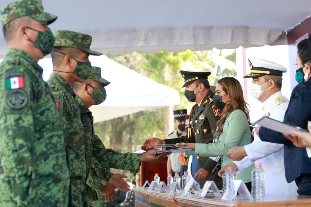 Ademas la gobernadora Evelyn Salgado y autoridades civiles con mandos militares y navales, hicieron entrega de reconocimientos al personal militar de esta jurisdicción en Guerrero que han demostrado con su profesionalismo y vocación de servicio hacerse acreedores a distintas condecoraciones qué establecen las leyes y reglamentos militares.