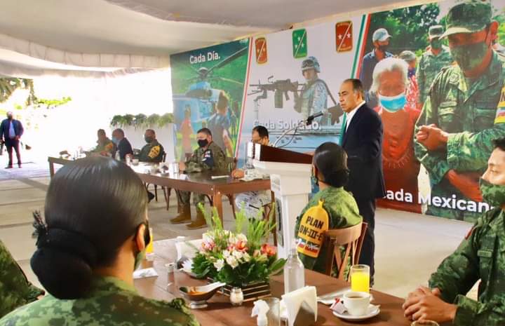 El ejecutivo guerrerense, acompañado del comandante de la Novena Región Militar, Eufemio Ibarra Flores; el comandante de la Octava Región Naval, Julio César Pescina Ávila; el coordinador estatal de la Guardia Nacional en Guerrero, Lucio Vergara Gómez; el jefe de Estado Mayor de la 35 zona militar, Alfredo Montiel Godínez; el secretario General de Gobierno, Florencio Salazar Adame, reconoció que el Ejército juega un papel muy importante en materia de seguridad interior y exterior, pero también en los momentos de emergencia por desastres naturales.