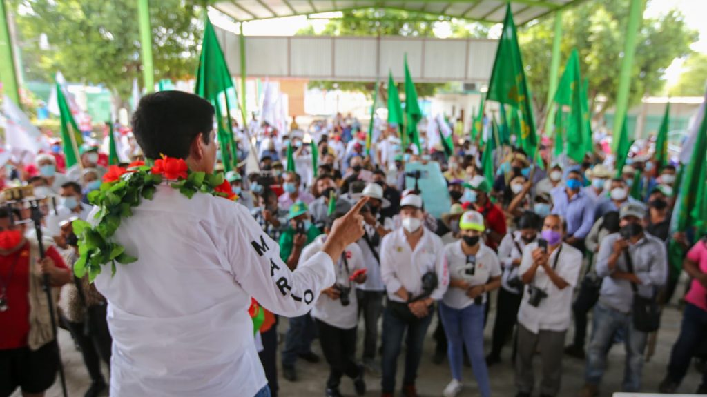 Marco Antonio Reyes de la Unión Nacional de Trabajadores Agrícolas (UNTA) le dijo “con el apoyo y respaldo de todos nosotros llegará a ser gobernador Contador Mario Moreno, y que esas necesidades que hemos hablado y que ya firmó el 17 de abril un compromiso, sabemos que las cumplirá”.