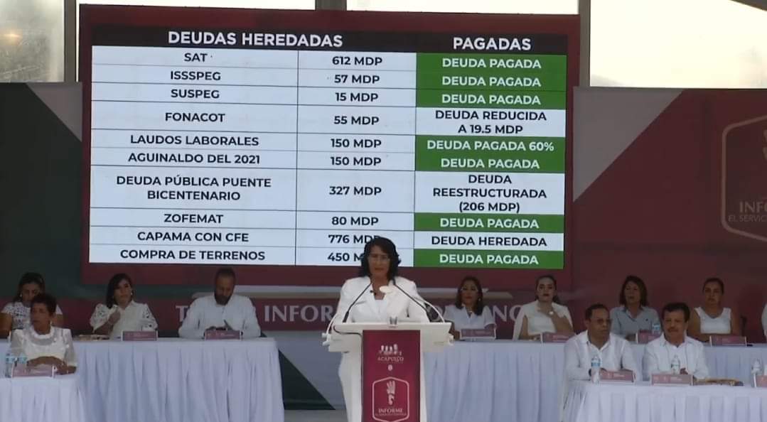La prueba de ello, es los pagos anticipados de los aguinaldos a los trabajadores del municipio, el manejo e la deuda con la Comisión Federal de Electricidad en la Comisión de Agua Potable y Alcantarillado del Municipio de Acapulco (CAPAMA). El sacar a la clase trabajadora del estatus negativa ante instituciones bancarias. El pago puntual de la nómina. El conseguir la opinión positiva en el Servicio de Administración Tributaria (SAT), para con ello, lograr la posibilidad de obtener créditos bancarios mayores para solventar, en un futuro, cualquier imprevisto financiero.