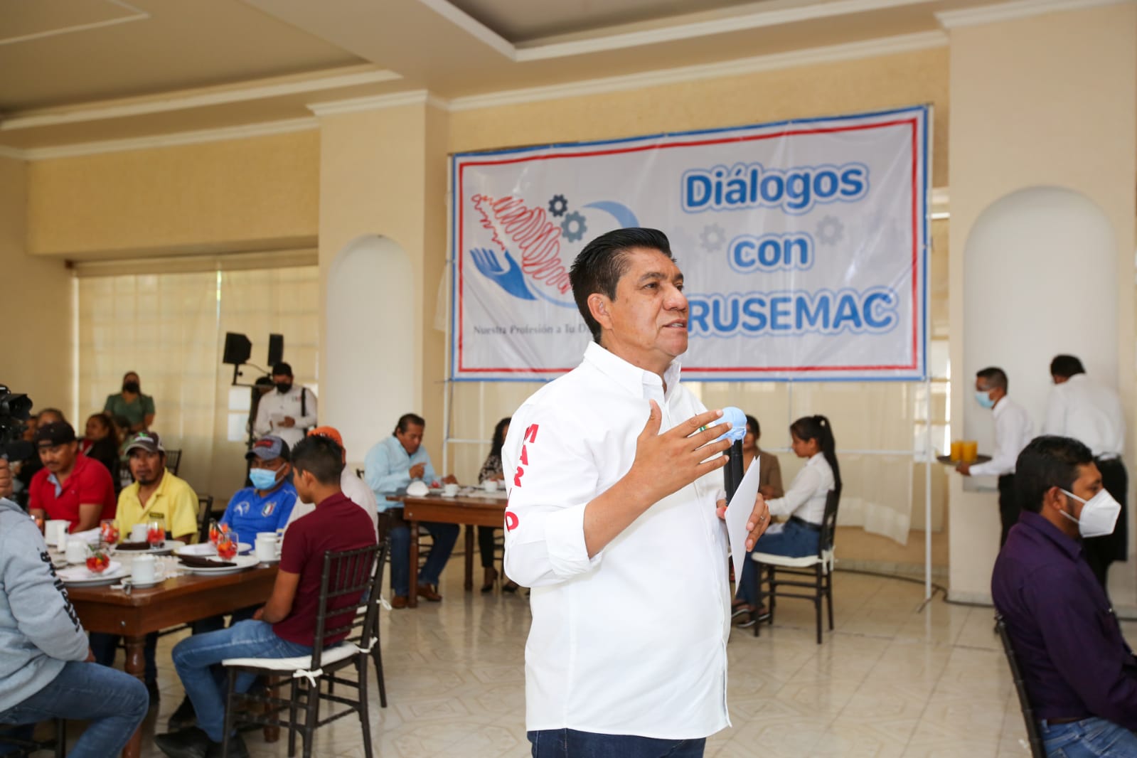 Chilpancingo de los Bravo, Gro. A 20 de mayo de 2021.- Al acudir como invitado al encuentro con la Asociación Civil Profesionales Unidos al Servicio de México (PRUSEMAC), el candidato a gobernador Mario Moreno Arcos reiteró su compromiso para trabajar con los empresarios de Guerrero e impulsar el desarrollo económico en los próximos 6 años.