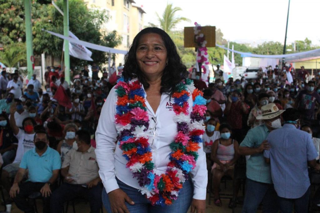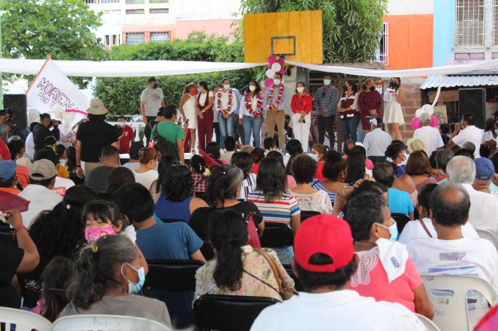 Acapulco,Gro., a 19 de mayo del 2021. – La tarde de este viernes cientos de personas se dieron cita al mitin que se desarrolló en la cancha techada de la colonia Mozimba Infonavit López Portillo, donde la candidata Abelina López Rodríguez habló de las diversas propuestas que ha llevado a lo largo de su campaña rumbo a las elecciones del 6 de junio, entre ellas solucionar el tema del agua potable así como el saneamiento de la bahía, la generación de empleo y otras como la integración de agenda 20-30 de la ONU al Plan de Desarrollo Municipal.