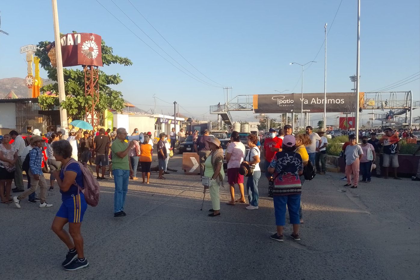 El grupo de aproximadamente 60 personas, desde las 07:00 de la mañana salieron de sus domicilios y con algunas lonas, cerraron la circulación de la carretera Cayaco – Puerto Marqués justamente frente al centro comercial Plaza Patio.