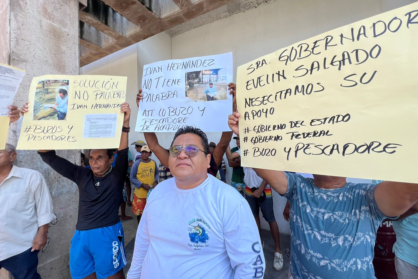 Acapulco; Gro.- Miembros de distintas cooperativas de pescadores y buzos adheridas a la Federación de Comité de Buzos y Pescadores Independientes del Estado de Guerrero amagaron con realizar con un bloqueo para exigir ayuda federal ante la parálisis de su sector.