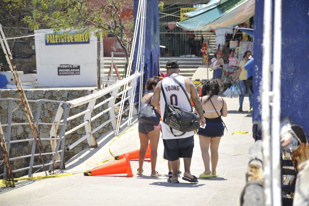 Acapulco,Gro., a 17 de marzo del 2023.-Prestadores de servicios turísticos de la zona de playa de Caleta y Caletilla, urgieron a las autoridades den atención ante un posible e inminente colapso del puente que conecta el embarcadero de lanchas de fondo de cristal con la franja de arena.
