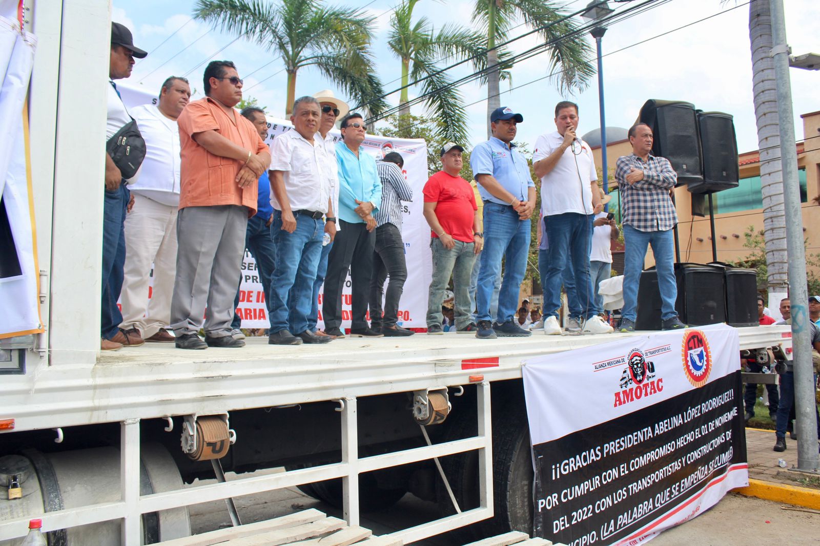 Desde las 7:30 de la mañana, el grupo de aproximadamente 200 transportistas con unidades pesadas se colocaron sobre él Boulevard de las Naciones justamente frente a las instalaciones de PROTUR para comenzar a dar a conocer parte de los acuerdos que se entablaron en la reunión con el Secretario General de Gobierno, Ludwig Marcial Reynoso.