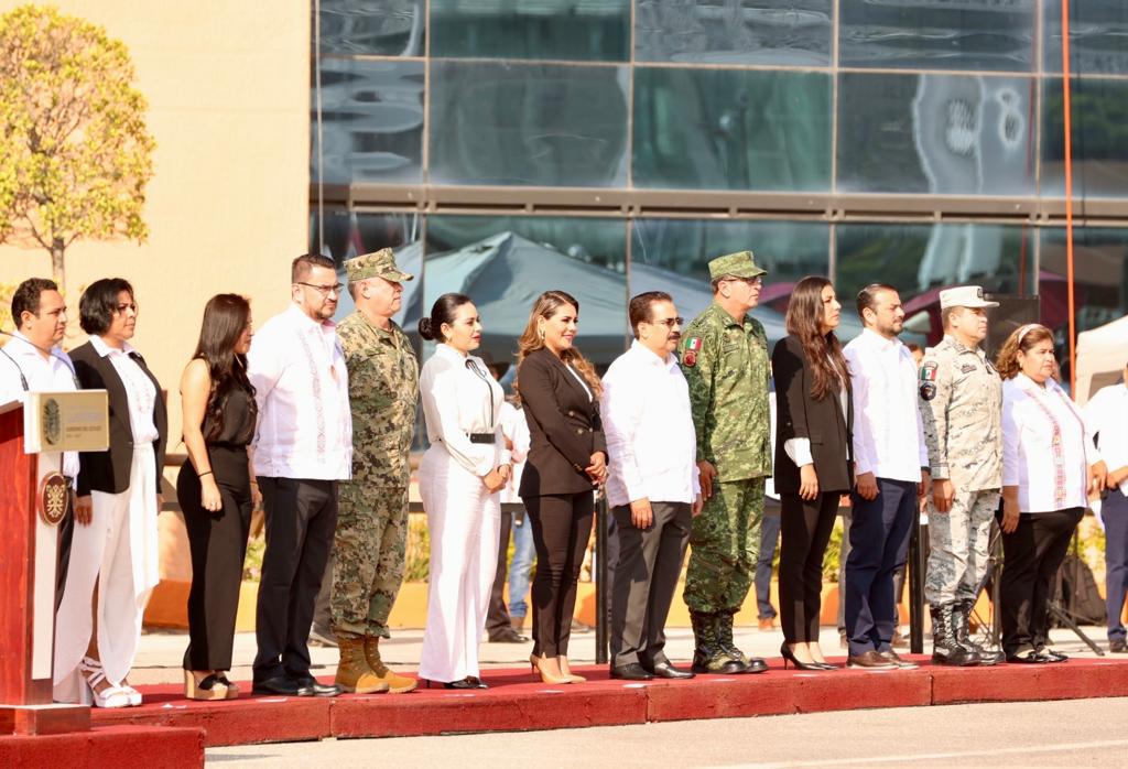 Acompañada por los representantes de los poderes Legislativo y Judicial, así como mandos militares durante este evento cívico correspondiente al mes de noviembre, la mandataria recordó que el 25 de noviembre se conmemora el Día Internacional de la eliminación de la violencia contra la mujer, por lo cual, dijo que se trabaja de manera incansable, todos los días, por nuestras niñas, adolescentes y mujeres, por garantizar su derecho a una vida libre de violencia, a su libre determinación y desarrollo.