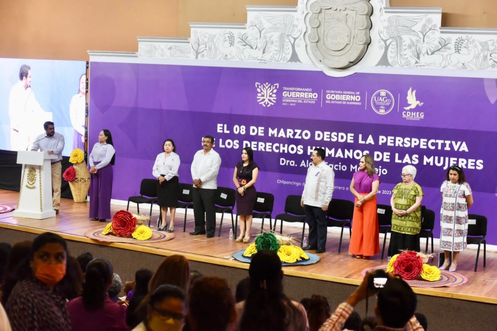 Chilpancingo, Gro., 8 de marzo de 2023.- En Guerrero se avanza en el reconocimiento de los derechos humanos de las mujeres y se trabaja todos los días para prevenir, sancionar y erradicar todo tipo de violencia contra ellas, aseguró el secretario general de Gobierno Ludwig Marcial Reynoso Núñez al inaugurar la conferencia denominada “El 8 de Marzo desde la perspectiva de los Derechos Humanos de las Mujeres”.
