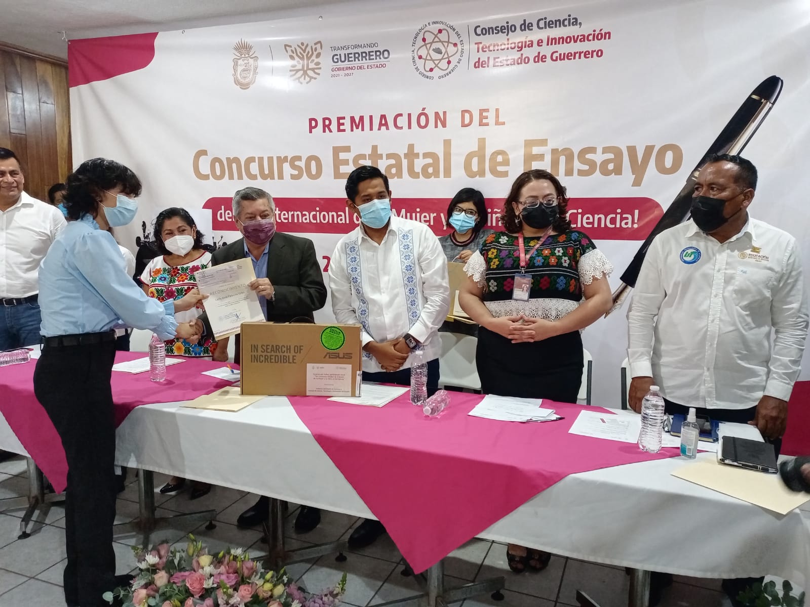 Chilpancingo de los Bravo, Gro., a 02 de junio del 2022.-En representación de la Gobernadora, Evelyn Salgado Pineda, el Secretario de Educación en Guerrero, Marcial Rodríguez Saldaña, entregó reconocimientos a las ganadoras del Concurso Estatal de Ensayo del Día Internacional de la Mujer y la Niña en la Ciencia, en el cual participaron 322 niñas, adolescentes y jóvenes de las distintas regiones de la entidad, de nivel secundaria, bachillerato y superior.