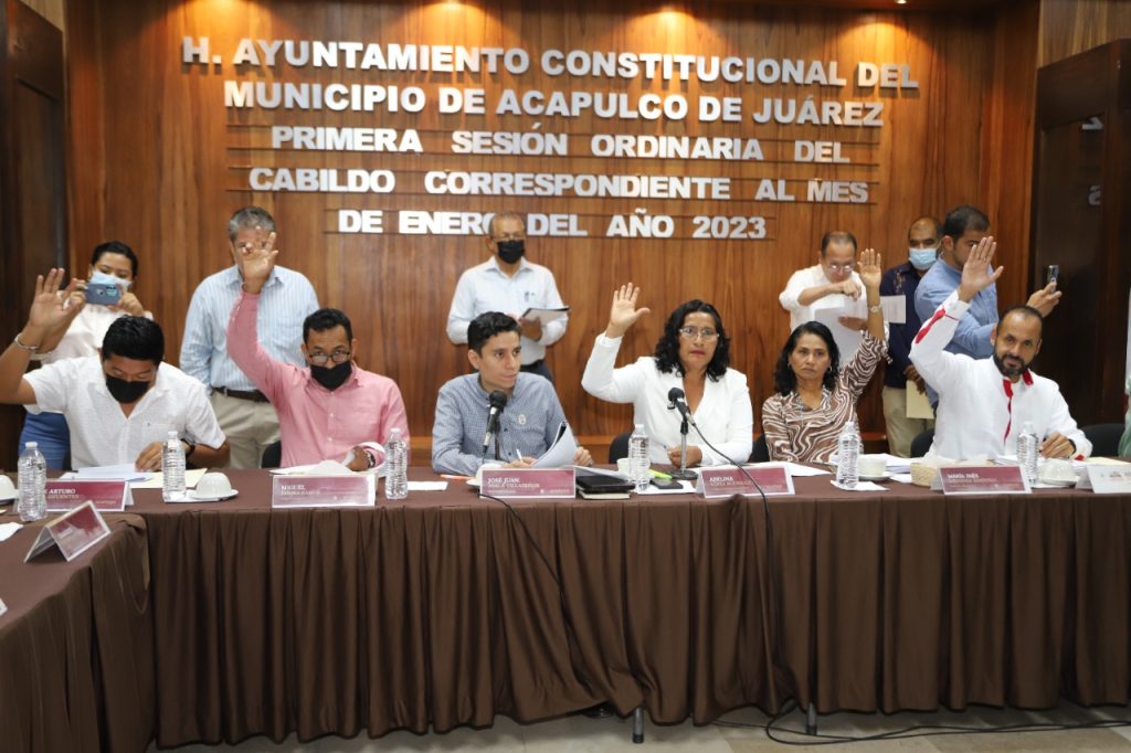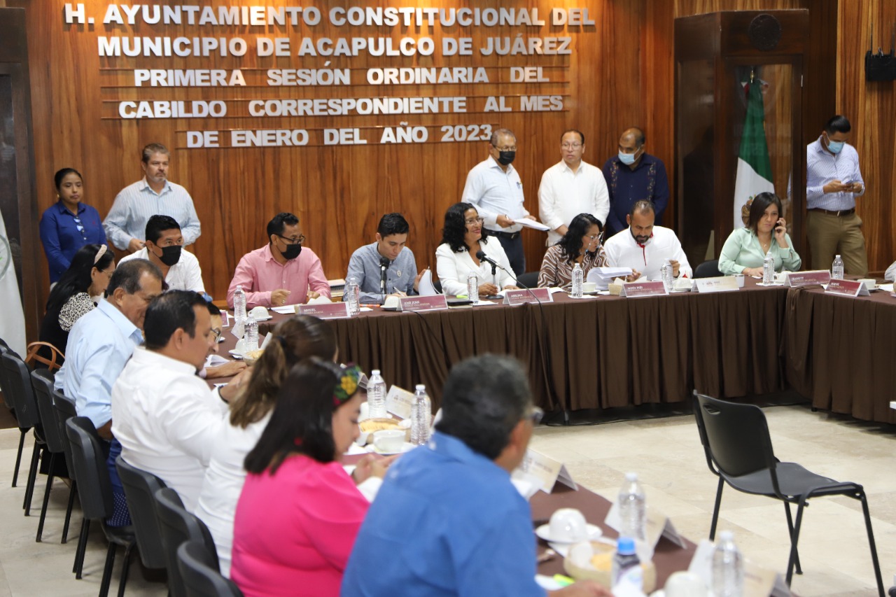 Acapulco, Gro., 26 de enero de 2023.- Durante la primera sesión ordinaria de Cabildo, correspondiente al mes de enero del año en curso, los regidores analizaron, discutieron y aprobaron proyectos a favor de la población acapulqueña.
