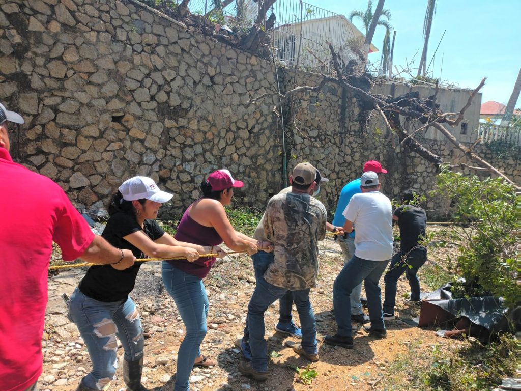 Acompañada de su equipo de trabajo, la legisladora dirigió desde temprano el retiro de ramas, troncos, basura y escombros en la unidad habitacional Las Américas, ubicada por el rumbo de Caleta.