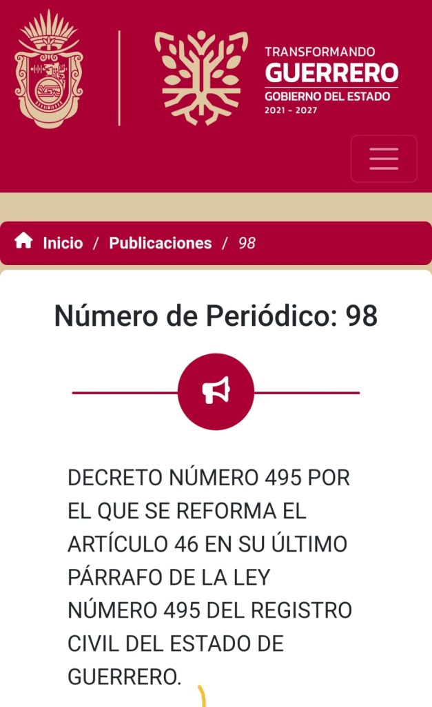 ACAPULCO, Gro., 22 de febrero del 2024.- El Periódico Oficial del Estado de Guerrero publicó y con ello entró en vigor la reforma a la Ley del Registro Civil propuesta por el diputado local de Morena Joaquín “Jacko” Badillo Escamilla, para que los matrimonios puedan decidir libremente y de manera consensuada el primer apellido de sus hijos al registrarlos.
