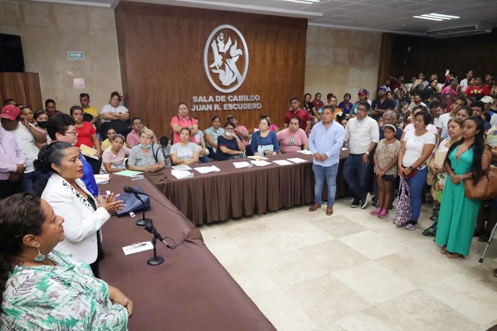 En la sala de Cabildo Juan R. Escudero del Ayuntamiento, en grupos de 20, las y los comerciantes se acercaron a las autoridades para recibir un apoyo económico y una despensa.