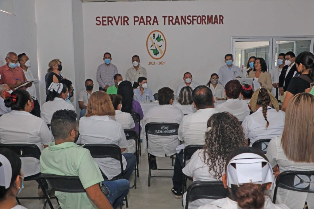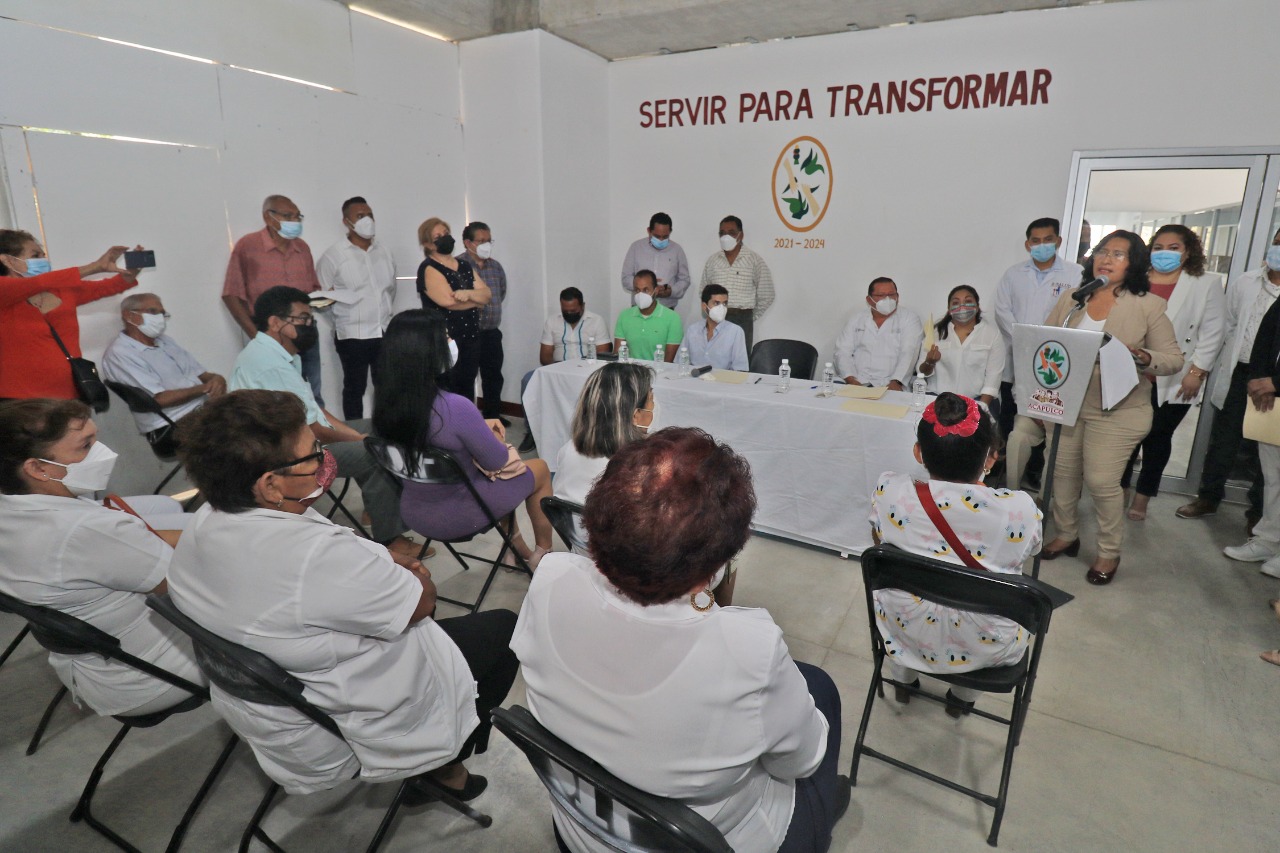 En las instalaciones habilitadas en el nuevo edificio del antiguo Ayuntamiento, la alcaldesa llamó a médicos, enfermeras y enfermeros, a brindar un buen servicio a la población y destacó que durante su administración se combate la corrupción y los invitó a cumplir con sus responsabilidades laborales.