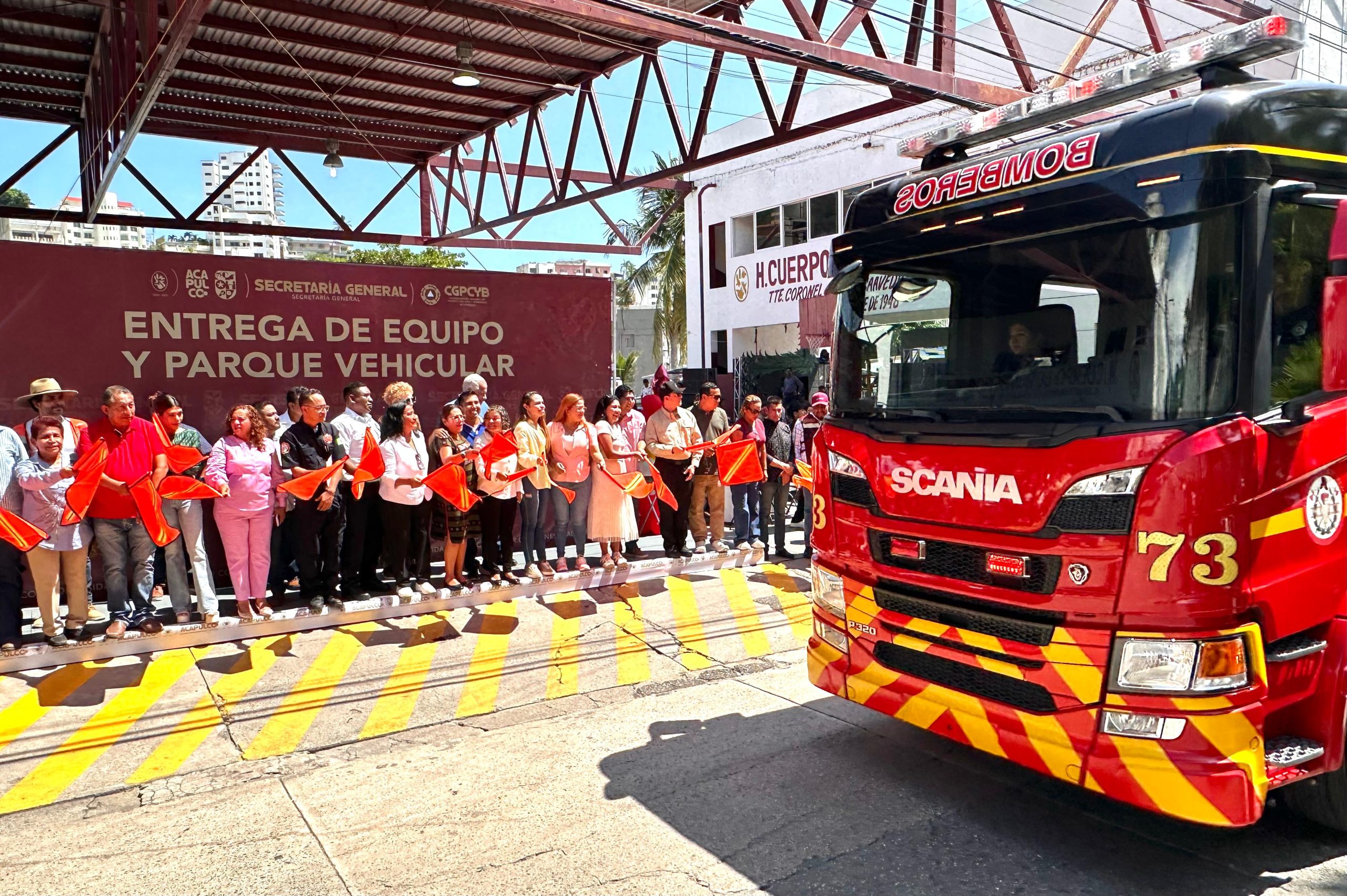 El paquete de equipamiento también contempla dos cuatrimotos modelo 2025, una moto acuática, uniformes para 160 bomberos, equipo de extracción vehicular, equipo de cómputo, prendas de seguridad y equipo especializado.
