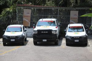 En el acto protocolario, la Presidenta Municipal entregó las llaves de una camioneta marca RAM-2500 modelo 2022, HD CREW 4×4 tradesman de transmisión automática, también de dos camionetas marca RAM-700 SLT CREW modelo 2023 de transmisión manual.