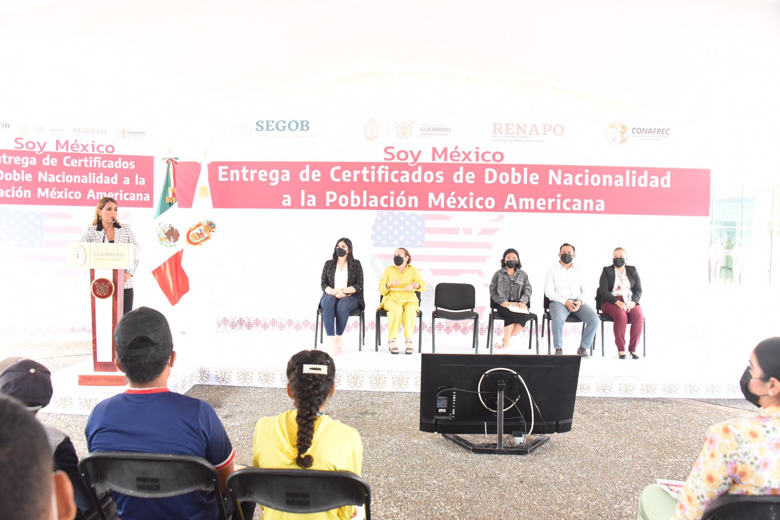 Chilpancingo, Gro., 19 de agosto del 2022. – Para garantizar el derecho a la identidad y dar certeza jurídica de niñas, niños y adolescentes que nacieron en Estados Unidos de Norteamérica y que radican en el Estado de Guerrero, la gobernadora Evelyn Salgado Pineda, entregó 300 Certificados de Doble Nacionalidad del programa “Soy México”, con el cual podrán tener acceso a todos los programas y servicios que por ley ofrece el Estado Mexicano y el Gobierno Estatal.