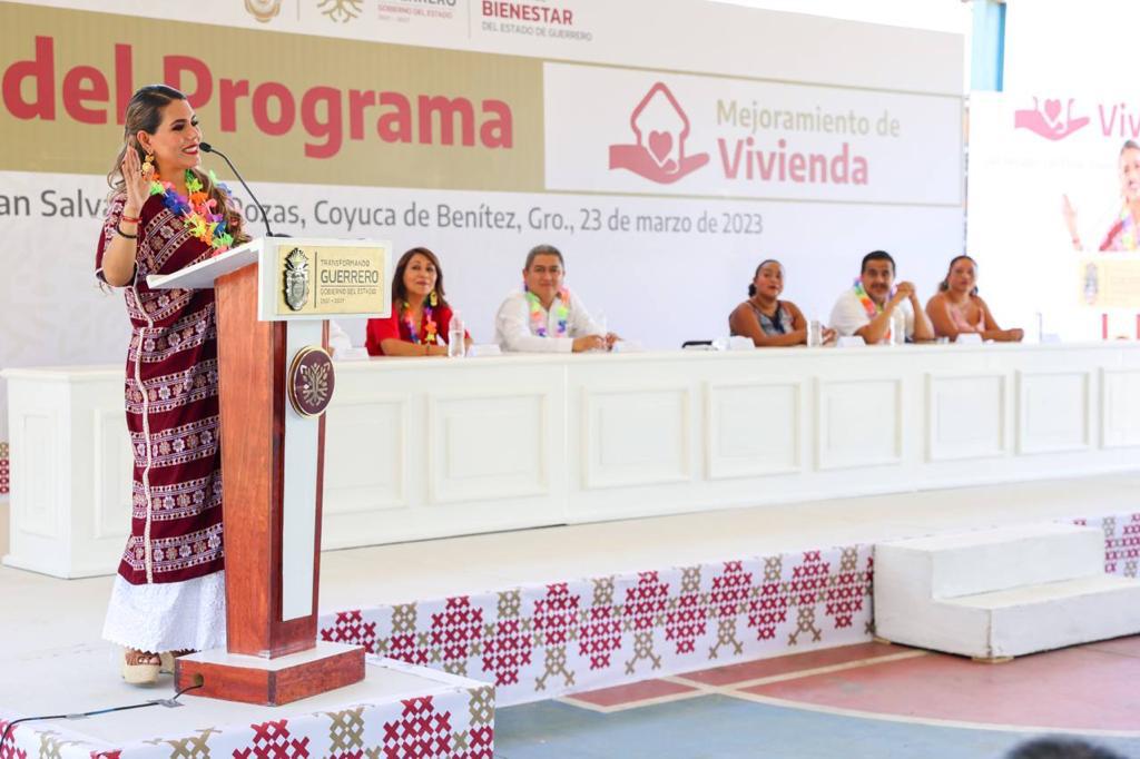 Enseguida, la mandataria estatal acompañada del alcalde de Coyuca, Ossiel Pacheco Salas, así como funcionarios de su gabinete, se trasladó a la comunidad de San Salvador Las Pozas, en donde hizo entrega de las 121 acciones del Programa de Mejoramiento de Vivienda, donde con una inversión de más de 6.5 millones de pesos, se dota a la población que más lo requiere de un espacio con piso y techos firmes, baño y estufa ecológica.