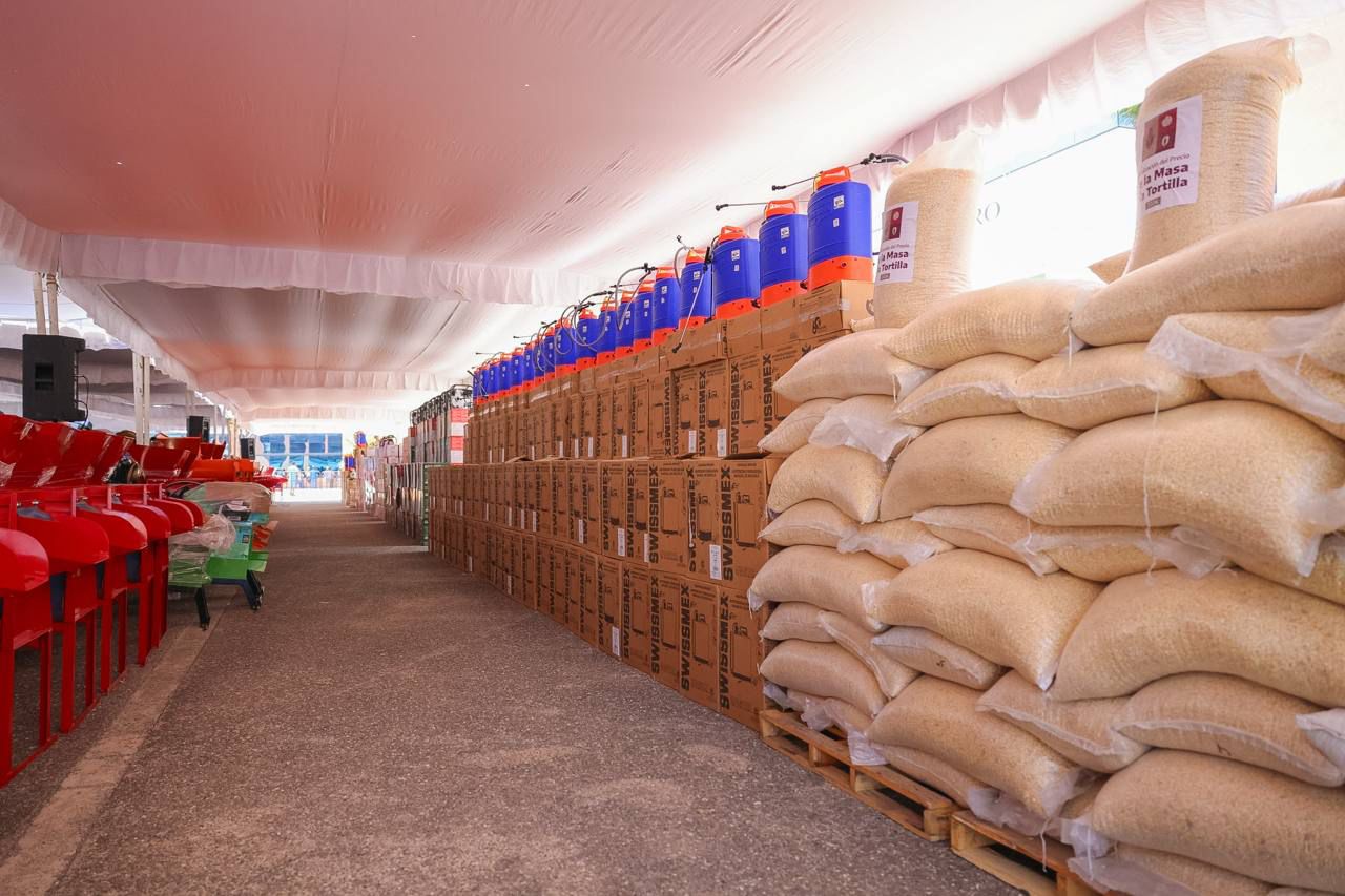 La gobernadora entregó equipamiento agrícola por más de 25 millones de pesos, además de insumos de maíz por más de 10.5 millones de pesos; garantías para el fortalecimiento de proyectos por más de 23 millones de pesos y equipamiento ganadero con una inversión de 8.2 millones de pesos.