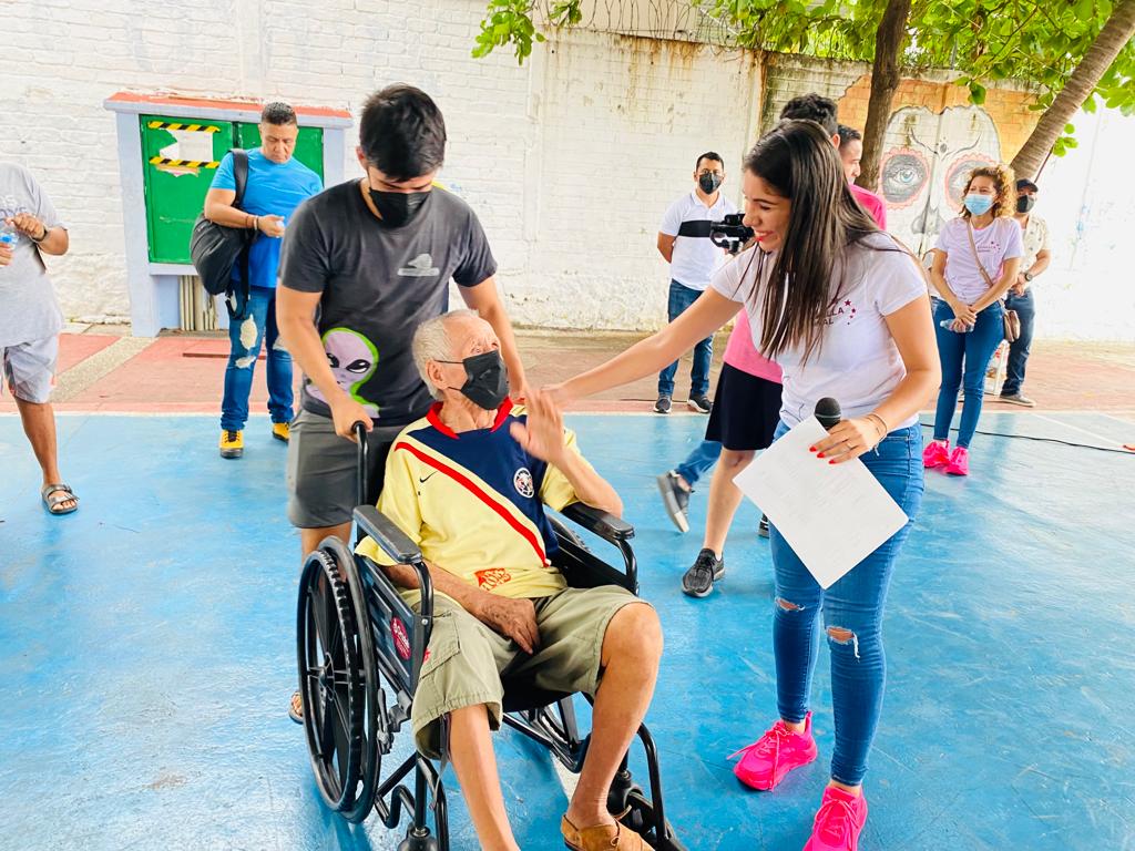 ACAPULCO, GRO., 04 de septiembre de 2022.- La diputada local Estrella de la Paz Bernal entregó este sábado sillas de ruedas, andaderas, muletas y bastones a medio centenar de personas con discapacidad y adultos mayores del puerto de Acapulco.