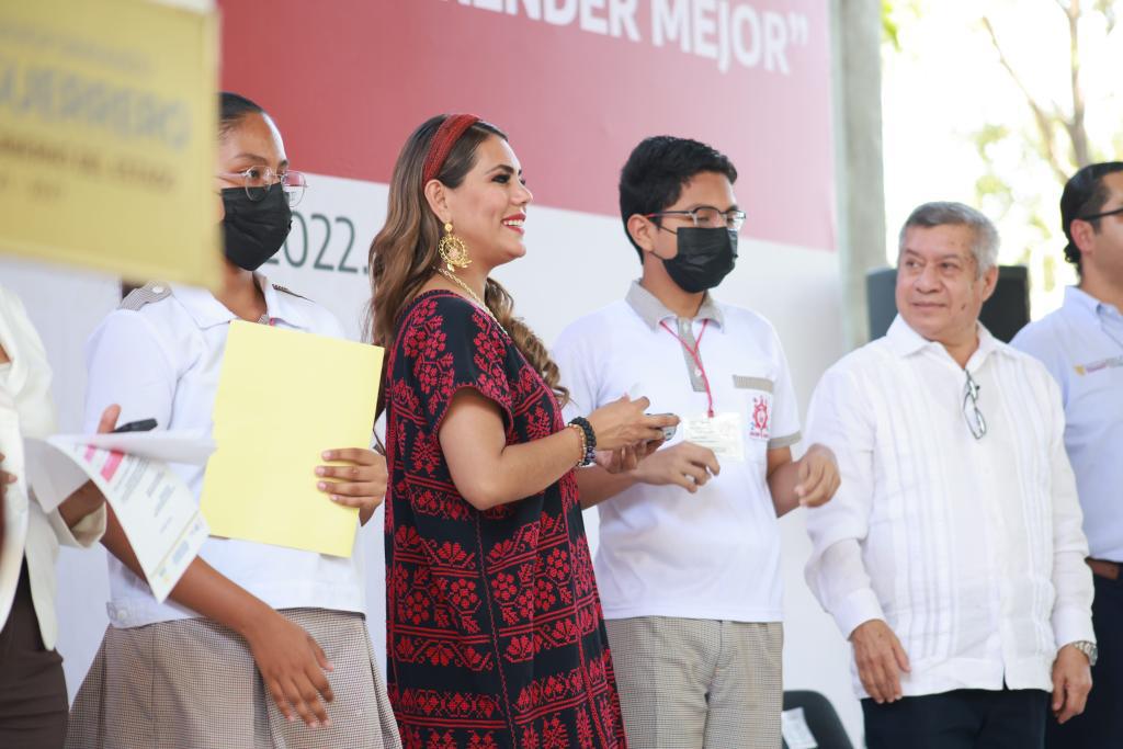 Durante su participación, la presidenta municipal de Acapulco reconoció la labor de la gobernadora Evelyn Salgado, quien “atinadamente ha impulsado” este programa que busca apoyar a niños y jóvenes para que no trunquen sus estudios.